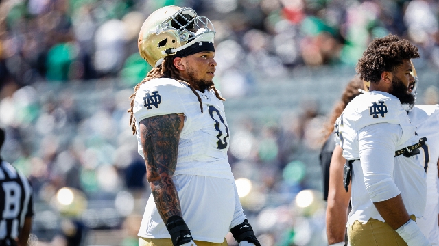 Former Oregon defensive tackle Tionne Gray transferred to Notre Dame to compete for a bigger role and a National Championship. Now back in the Midwest, the 6-foot-6 lineman is embracing the standard, the competition and the chance to elevate his game under DL coach Charlie Partridge.