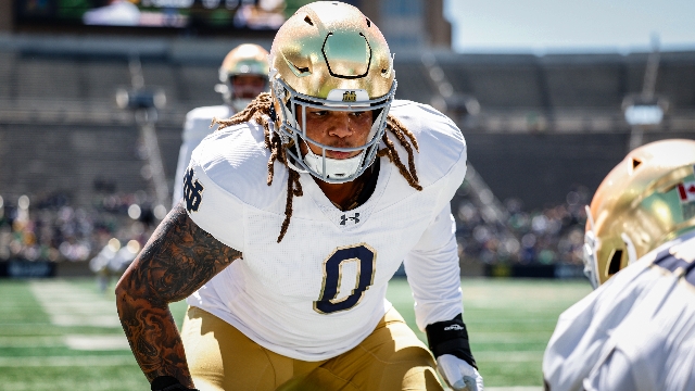Gray played over 200 snaps as a redshirt freshman at Oregon last season and has the physical traits to develop into two-down force at Notre Dame