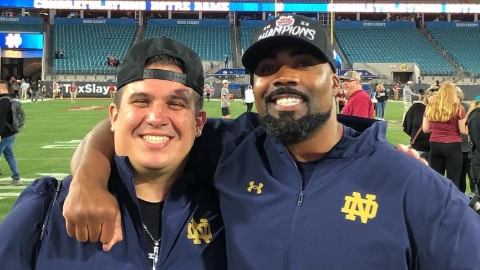 “He feels like his work ethic is underpraised,” says Greiner. “He’s always trying to outwork himself winning the day. That’s special to him. To be able to be on a national scale like Notre Dame where it’s nationally been recognized for 100 years. Notre Dame would probably have a bigger benefit than someone else, even some of the teams that have been better in the past. Texas has Longhorn Network, Notre Dame is affiliated with NBC, so it’s a national deal.