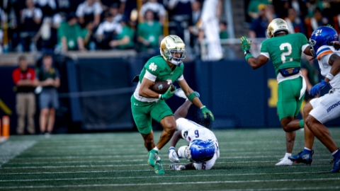 “Notre Dame has a great system running the football, similar to like a Stanford or a Michigan, where they’re running between the tackles in a pro-style and you have a lot more capability of having him more of a running back," he explains. "Where say the Clemsons of the world or something like that don’t run the football in a pro-style scenario, he’s not going to be running sideline to sideline parallel to the line of scrimmage. He wants to keep his shoulders parallel and destroy people that way. Is he the best running back in the country? Yes, hands down, not even close.”